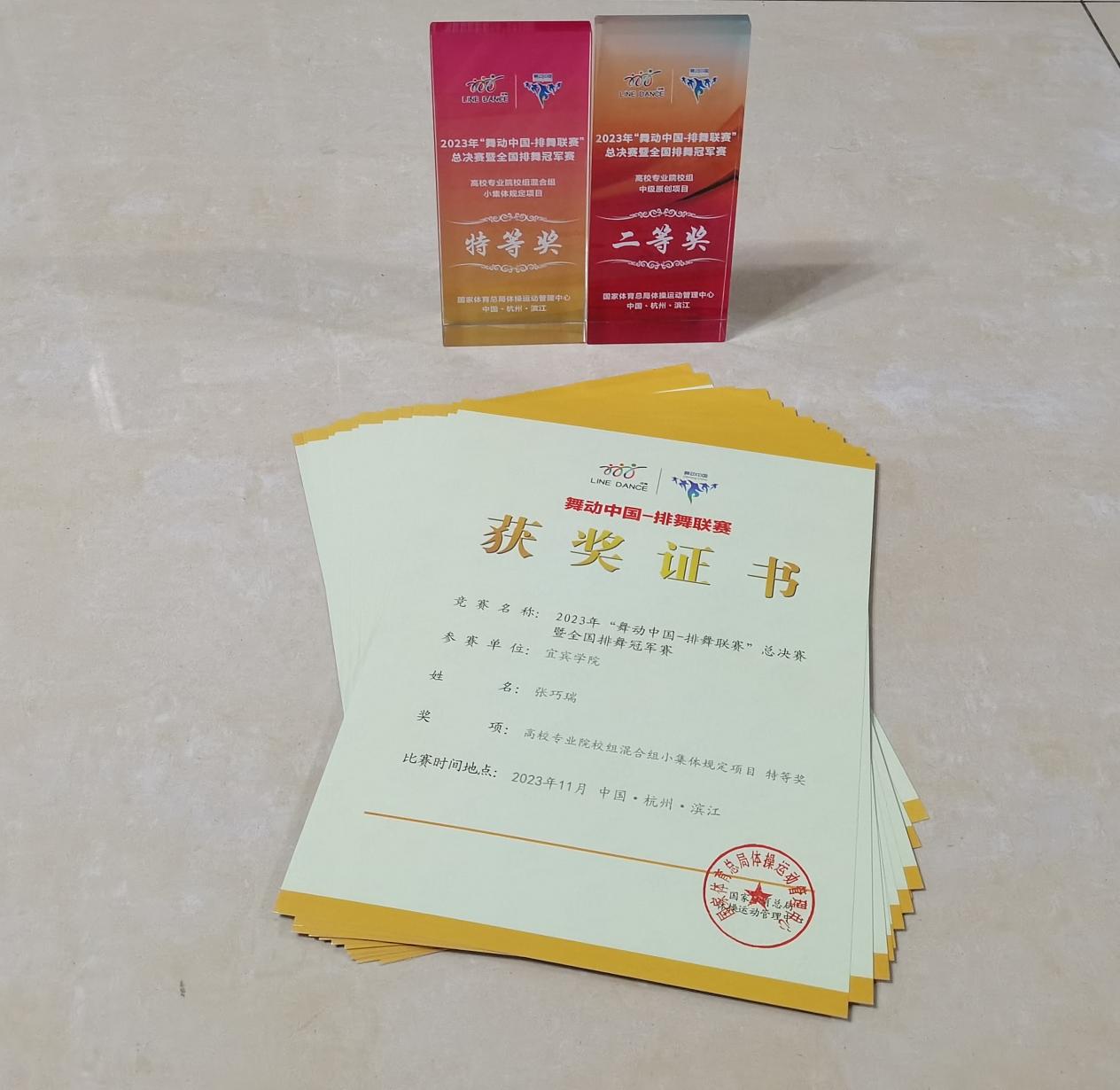 11月10日,由国家体育总局体操运动管理中心主办、杭州市体育彩票管理中心支持的中国体育彩票2023年“舞动中国-排舞联赛”总决赛暨全国排舞冠军赛在杭州市滨江体育馆隆重开幕。本届“舞动中国-排舞联赛”总决赛相聚在亚(残)运会场馆滨江体育馆,共吸引了全国23个省(市、自治区)、54个城市、214支队伍、3244名参赛选手共享这场“盛宴后劲”。宜宾学院排舞代表队获得高校专业院校组特等奖1项、二等奖1项的优异成绩。