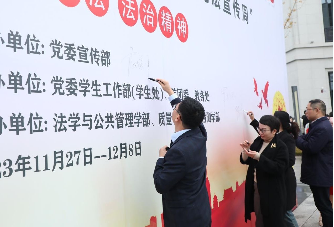活动要求,全校师生要持续深入学习宣传贯彻党的二十大精神和习近平法治思想,大力弘扬宪法精神,建设社会主义法治文化,推动全面贯彻实施宪法,增强法制观念和法律意识,增进依法治校、依法治理能力;要在校园中形成尊崇宪法、学习宪法、遵守宪法、维护宪法、运用宪法的良好风气;为学校高质量内涵发展营造健康、安全、稳定的环境氛围贡献力量,为学校建成特色鲜明的应用型综合大学提供强有力的支撑。